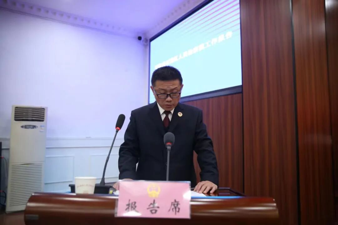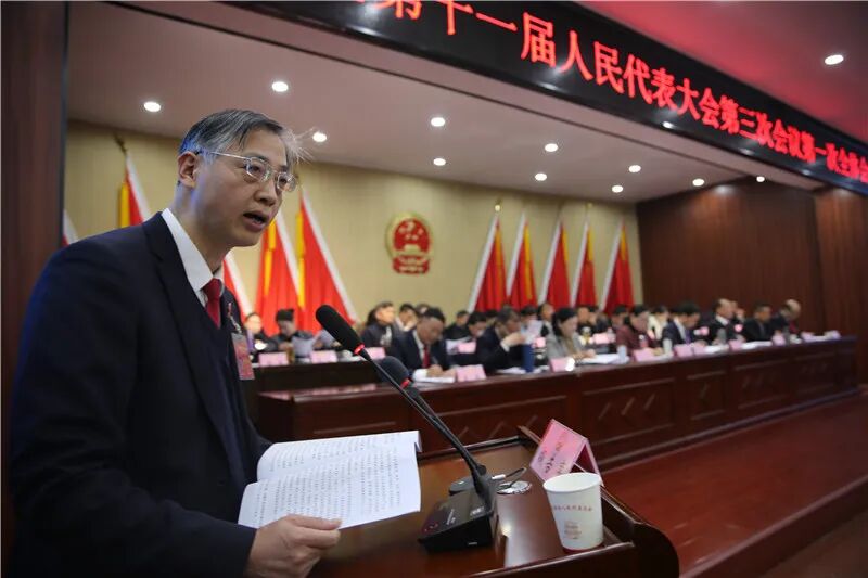 区法院院长谢峰代表区人民法院向大会作工作报告。