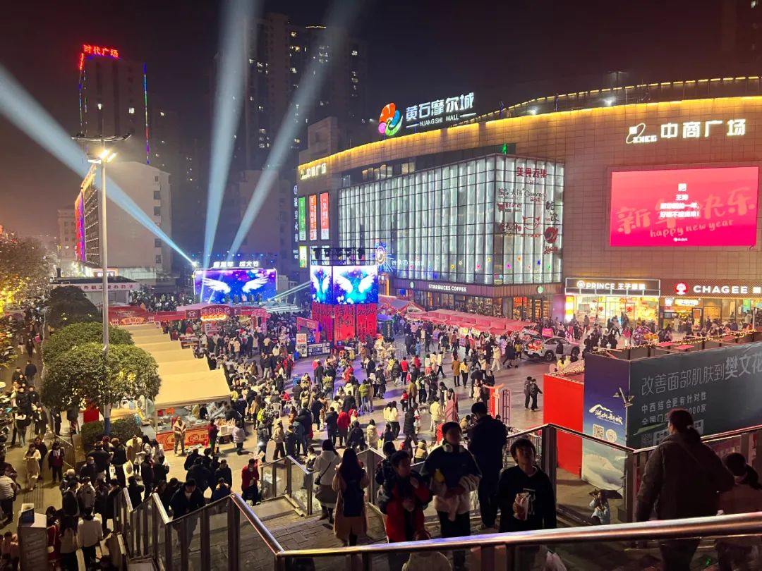 12月31日晚摩尔城广场人头攒动黄石“新春消费季”启动仪式暨2024年“跨年消费 五折优惠”黄石首届跨年欢购夜在此盛大举办
