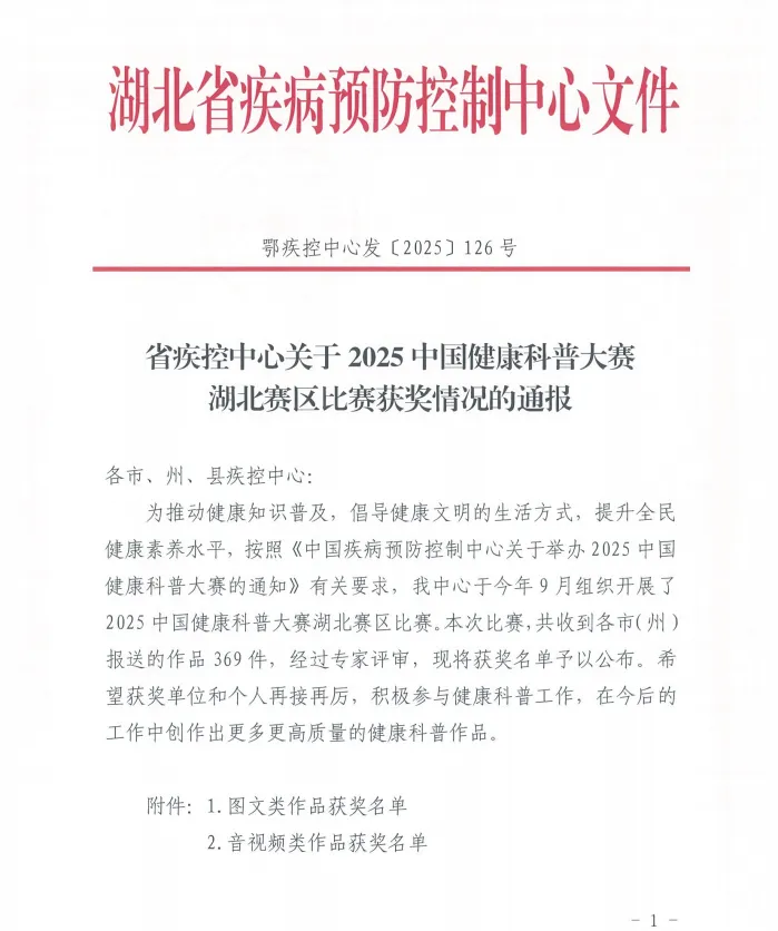 本次大赛由湖北省疾病预防控制中心主办,以“普及健康知识、倡导文明生活、提升全民健康素养”为宗旨,共收到健康科普作品三千余件。