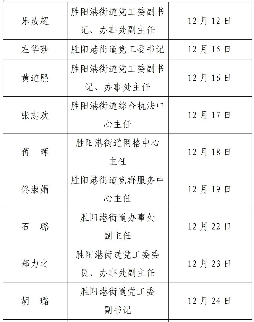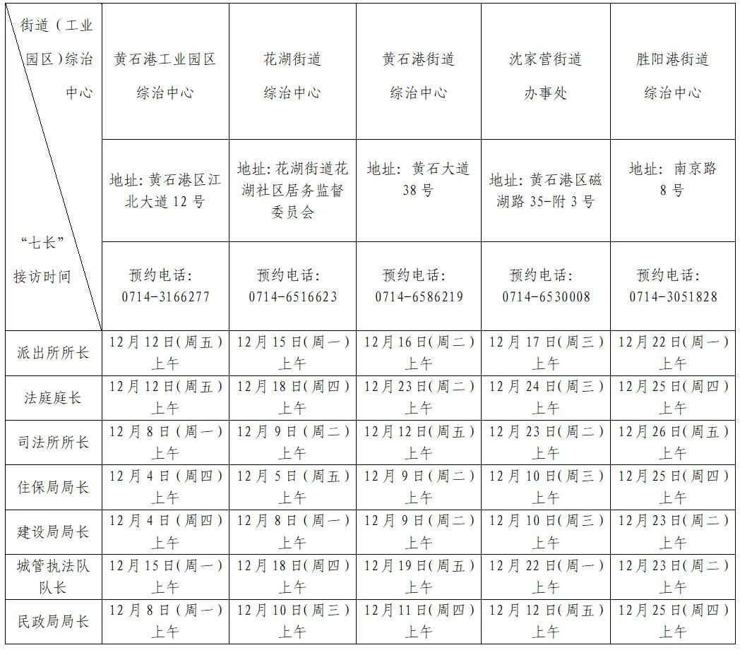 为深入推进平安建设,提升基层社会治理现代化水平,充分发挥综治中心及时为群众解决难办问题的枢纽作用,根据工作安排,现将12月区、街道两级领导、“七长”入驻综治中心接访有关事项公告如下: