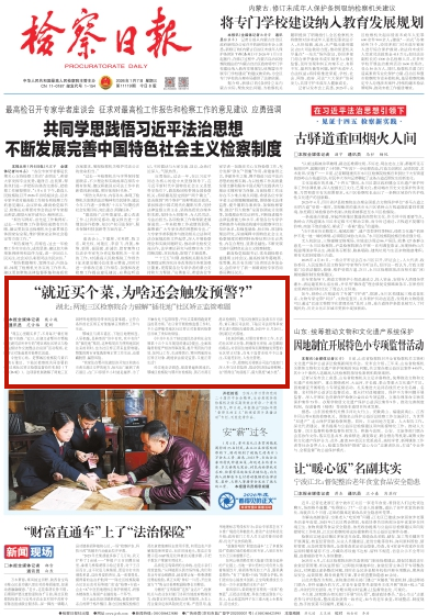1月7日,《检察日报》头版以《“就近买个菜,为啥还会触发预警?”》为题,报道黄石港区检察院、下陆区检察院与鄂城区检察院破解两地三区因特殊地理格局带来的监管难题。