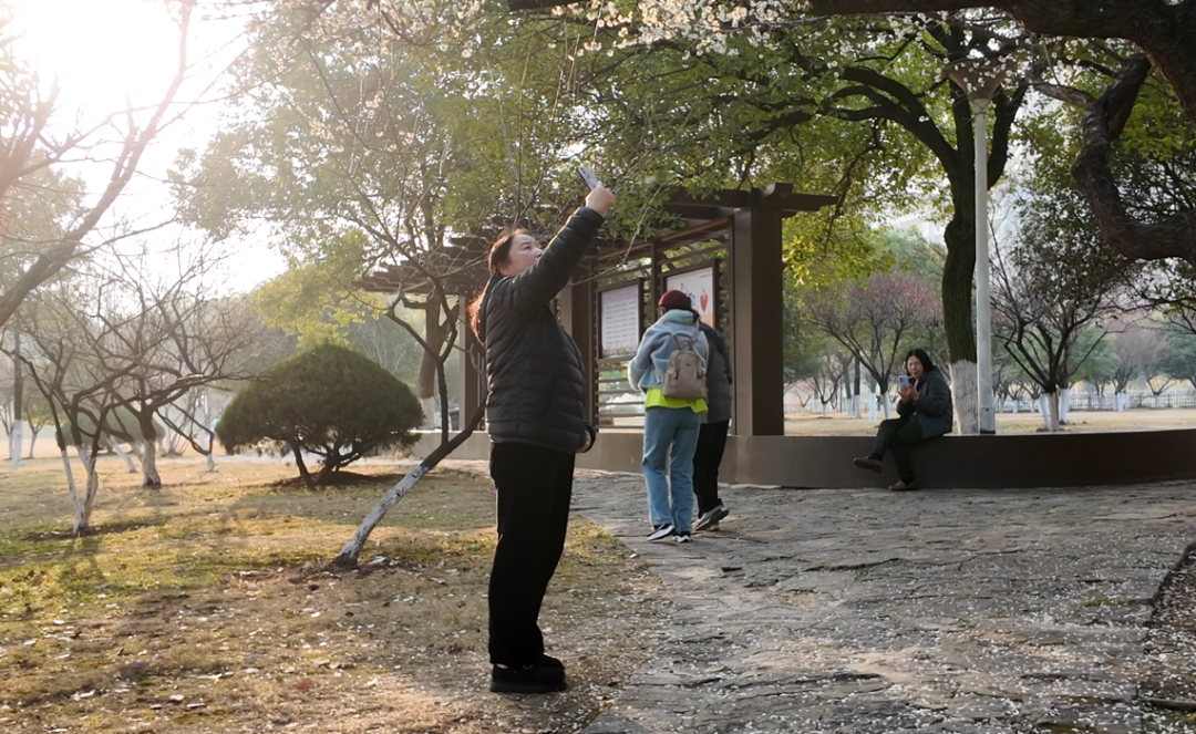 天气无常,花期有限。梅花最美的时刻,不仅在于它的姿态,更在于它如何融入我们的生活画卷——是花下悠闲的露营,是朋友携手走过的笑意,是相机定格的欢乐瞬间。