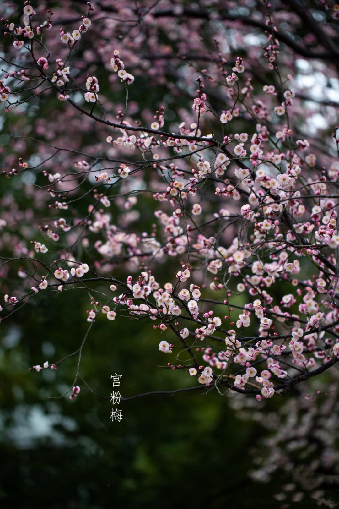 宫粉梅:淡粉或粉红色,花朵繁密,姿态柔美,最具古典韵味。