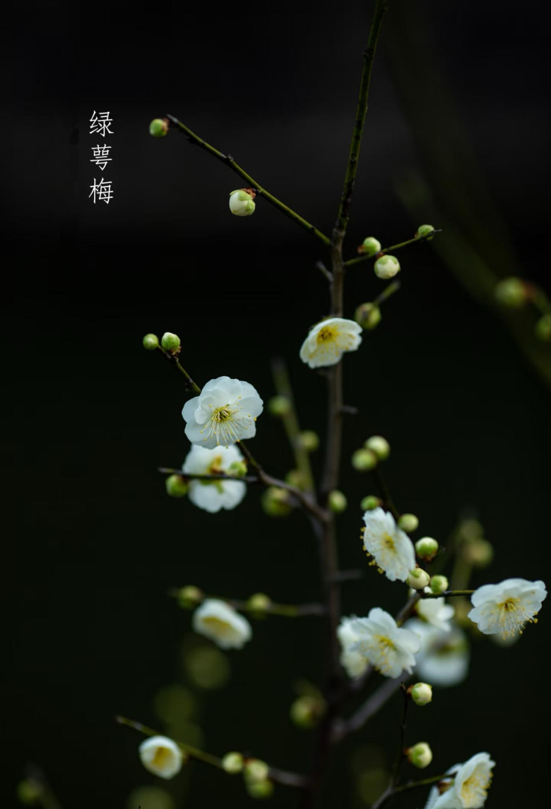 绿萼梅:花色洁白,花开时如蝴蝶落满枝头,冰雪中更显清雅傲骨。
