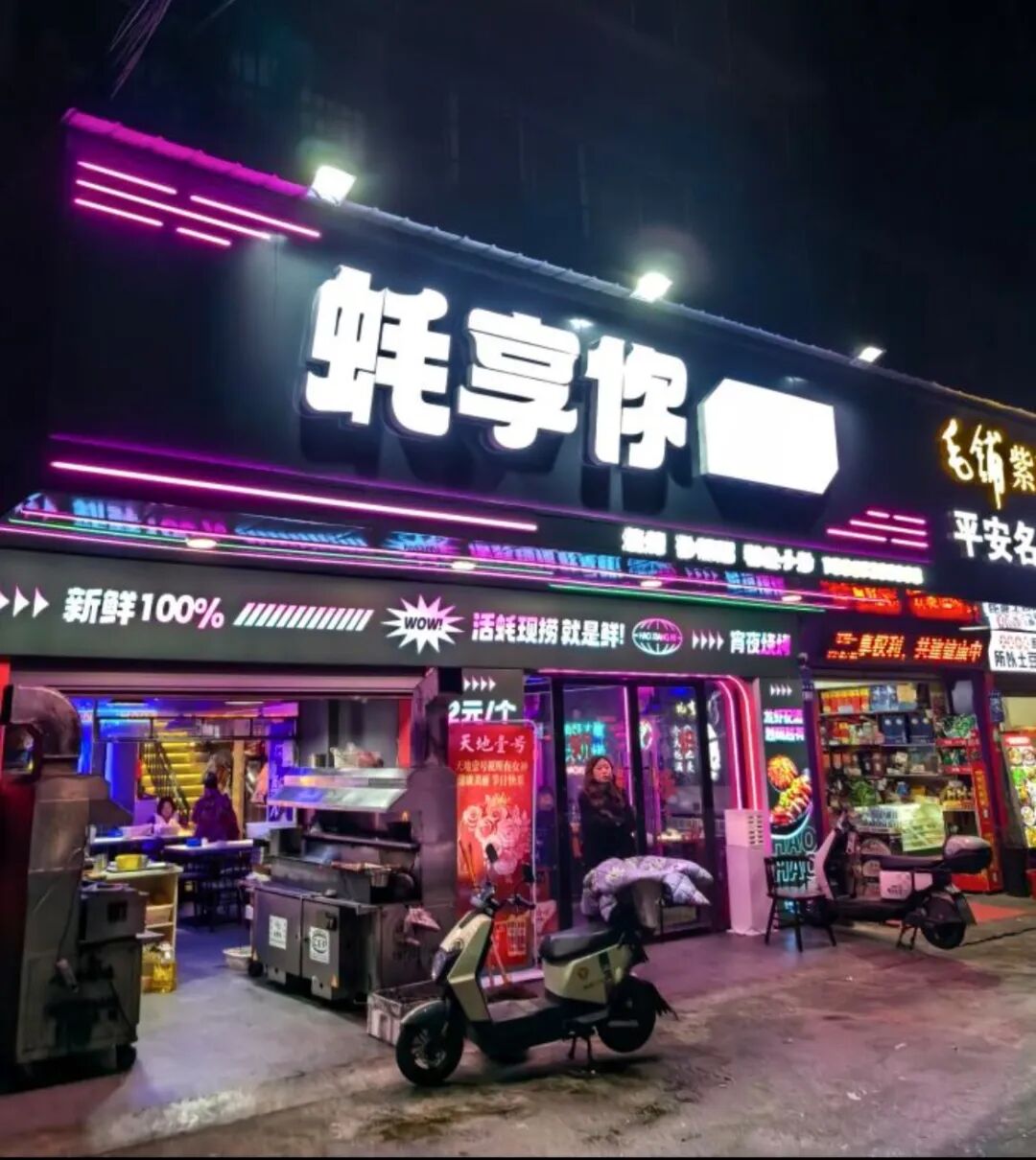 2018年,石文俊在黄石港万达附近开了第一家蚝享你烧烤店,上下两层共80多平方米,仅有11张桌子。开店初期的6个月一直处于亏损状态,日营业额常常只有50元到100元。他只能身兼数职,既要切肉、烤串,还要洗碗、做卫生……