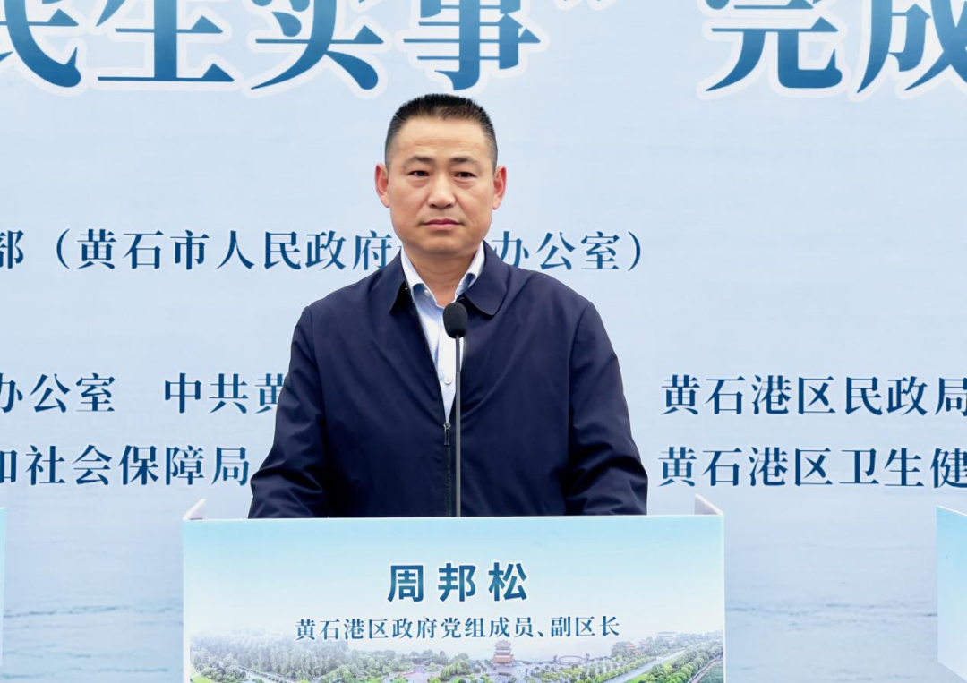 发布会上,区人民政府党组成员、副区长周邦松介绍黄石港区2025年“十件民生实事”完成情况。
