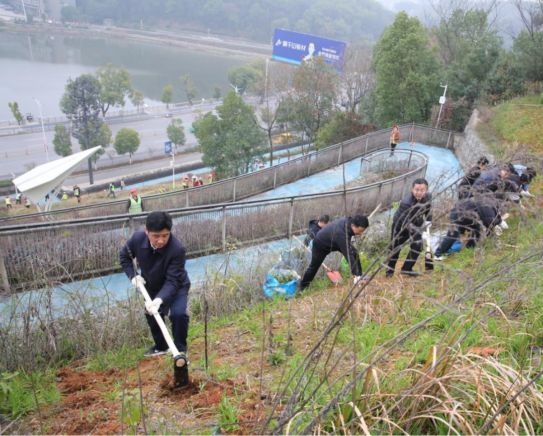 同时,各街道、社区组织群众在煤炭垅、桂花湾、老虎头、王昌茂等地开展群众性植树活动。党员干部、企业员工、居民群众团结合作,共种下桂花、红叶碧桃、女贞、橘树、石榴树、桂花树等各类苗木1300余棵及10000株杜鹃花。这些嫩绿的苗木将在这片土地上扎根生长,逐渐枝繁叶茂,为辖区增添清新绿意,有效提升城市生态品质,打造更宜居的生活环境。