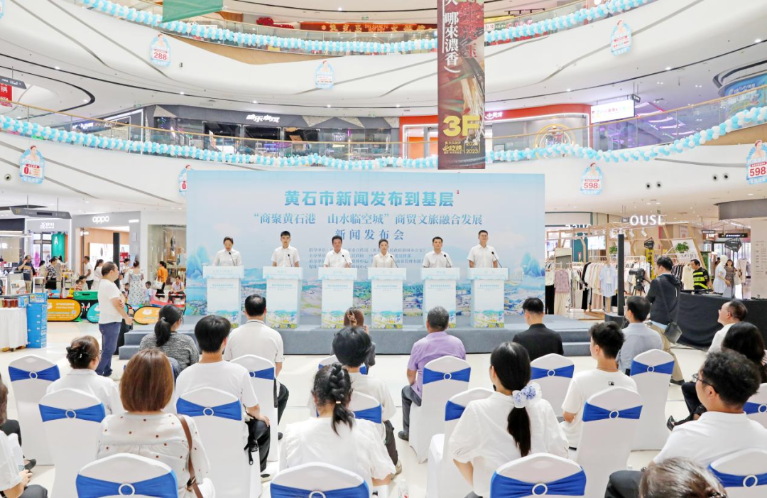 7月16日,黄石市新闻发布到基层黄石港区商聚黄石港  山水临空城新闻发布活动在万达广场举行。