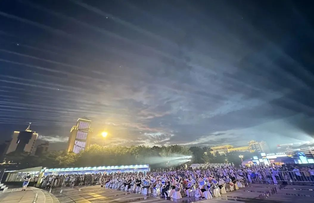 与现场数百名市民的欢呼声交织成夏夜