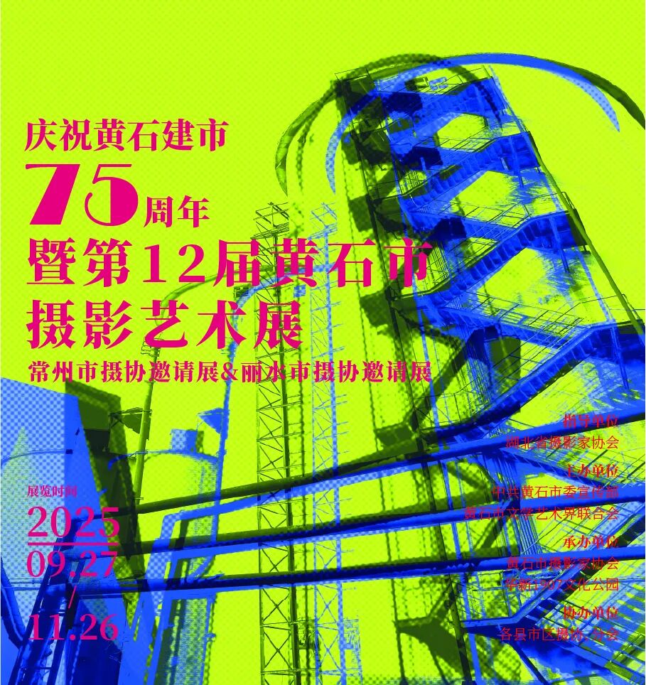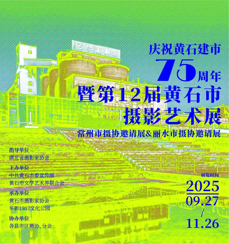 • 庆祝黄石建市75周年暨第12届黄石市摄影艺术展:不仅有黄石本地摄影师的精彩作品,还特别设置了常州市摄协邀请展、丽水市摄协邀请展。从工业硬核的工厂风貌,到静谧优美的湖畔灯塔,镜头将带我们穿梭黄石的过去与现在,感受这座城市75年来的沧桑巨变与独特魅力。