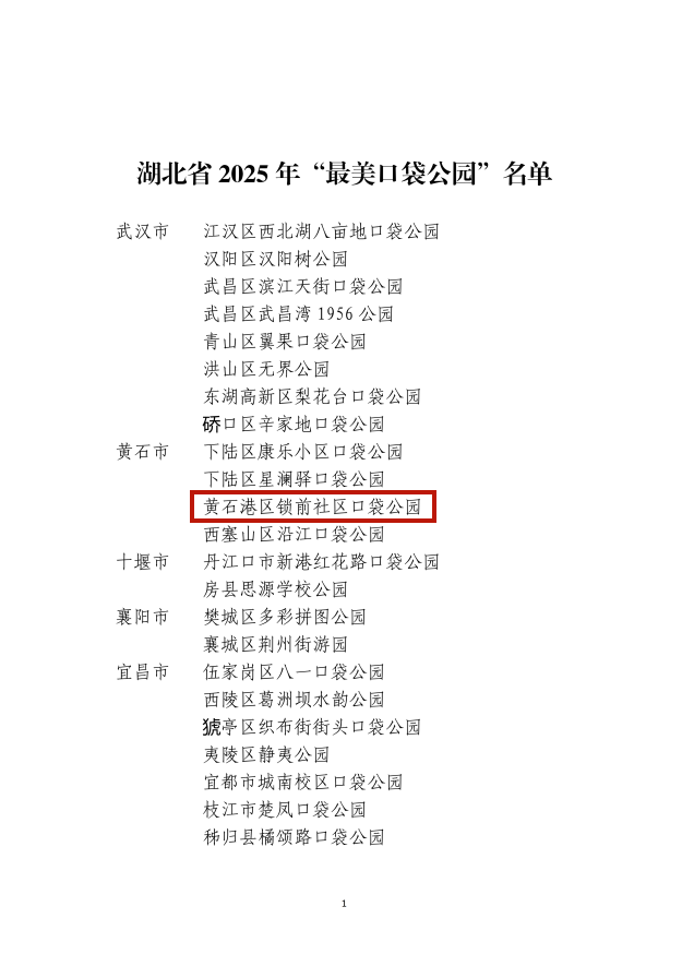 近日,湖北省住建厅公布湖北省2025年度“最美口袋公园”名单,黄石市黄石港区锁前社区口袋公园等40个口袋公园入选。