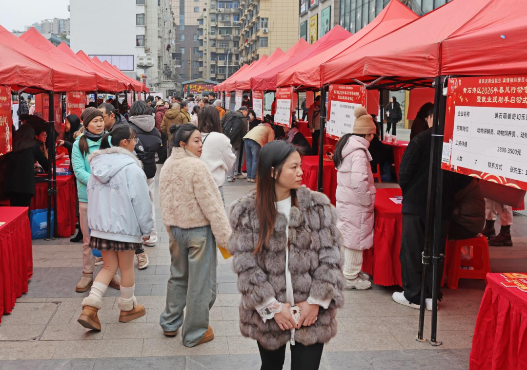 年味将近,暖意盎然。2月3日,黄石港区2026年春风行动暨就业援助季专场招聘、新时代文明实践中心集中示范暨文明集市进社区活动在黄石摩尔城前广场举行。市委宣传部副部长、文明办主任樊进,副区长周邦松参加活动。