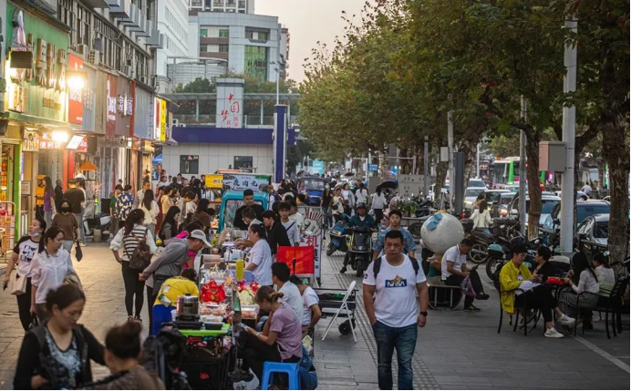 交通路步行街的3D户外大屏化身为全城球迷的狂欢主场。市民们围坐在一起,看球赛、品美食、享夜购。每当进球时刻,球迷们齐声呐喊、振臂高呼,让人仿佛置身赛场中央。