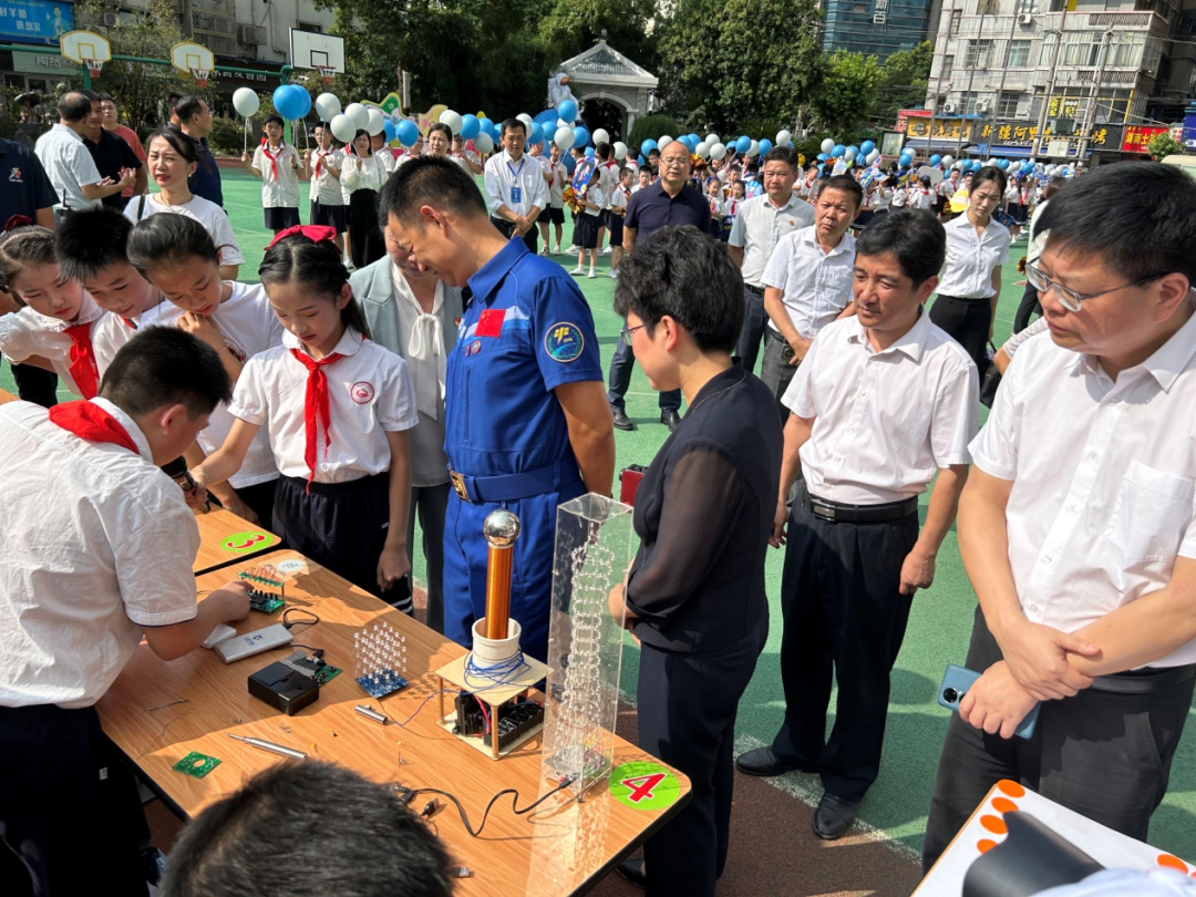 9月5日下午,英雄航天员聂海胜到黄石港区广场路小学开展航天知识科普讲座活动。活动由中共黄石市委、黄石市人民政府、黄石军分区主办,市委常委、市委宣传部部长、市政府党组成员周庆荣,市科协主席张襄兵,黄石港区委书记严荣勇,黄石港区委常委、宣传部部长黄铮等领导参加活动。
