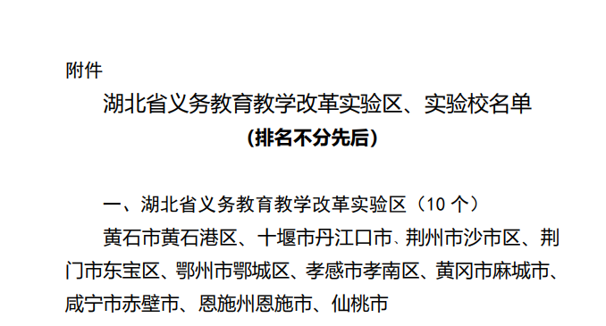 近日,湖北省教育厅公示了湖北省义务教育教学改革实验区、实验校名单。黄石港区成功入选了省级义务教育教学改革实验区,我区是黄石市唯一入选区县。