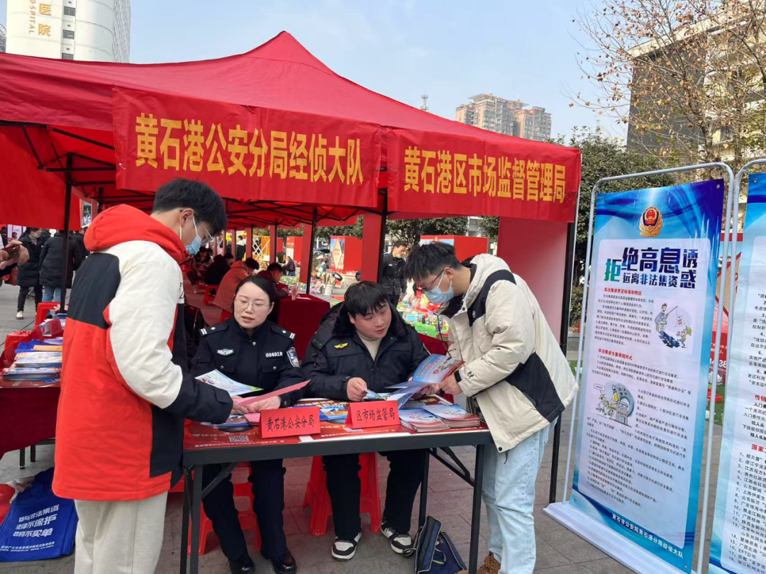 1月22日,区政府办、黄石港公安分局、区市场监管局、胜阳港街办联合广发银行、国泰君安等金融机构,在摩尔城广场开展防范非法金融宣传活动,与居民群众进行面对面交流。