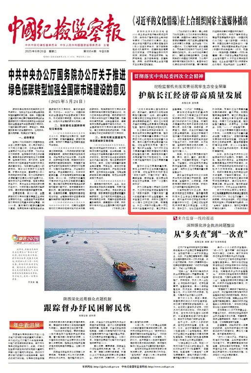 8月26日,《中国纪检监察报》头版以《纪检监察机关压实责任筑牢生态安全屏障 护航长江经济带高质量发展》为题,宣传相关单位强化政治监督、护航长江经济带高质量发展经验做法,其中提到黄石港区纪委开展监督检查工作的实践做法。