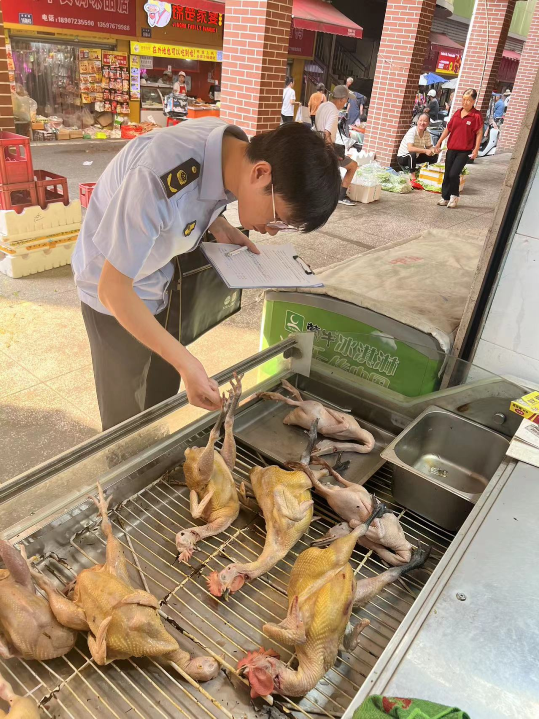 其中,1家冻库内存放有生产日期标签不清晰产品,3家家禽批发商户店内均有未经检疫的禽肉,便利店内发现3袋过期食品。针对发现的问题,工作人员对一般问题商家责令限期整改,对问题较严重的商家制作现场检查笔录,后续将移交市局执法支队。