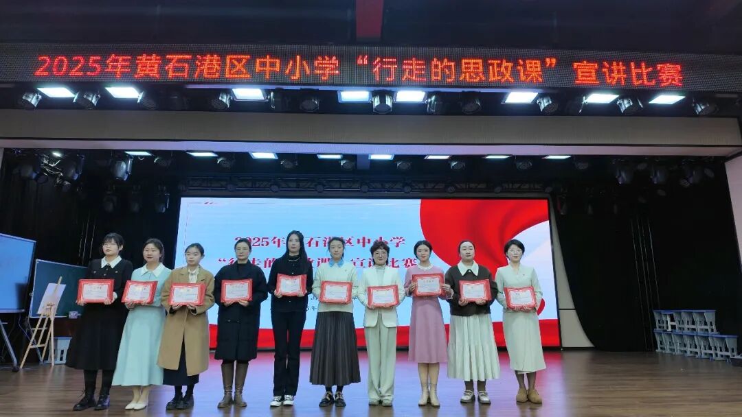 现场,选手们精神抖擞、各展所长,围绕宣讲主题,结合黄石港区本土故事解读初心使命,或立足教学实践分享育人心得,或紧扣时代热点阐释责任担当,赢得热烈掌声,充分彰显了黄石港区思政教师扎实的专业素养与深厚的育人情怀。比赛产生了4名一等奖,6名二等奖。