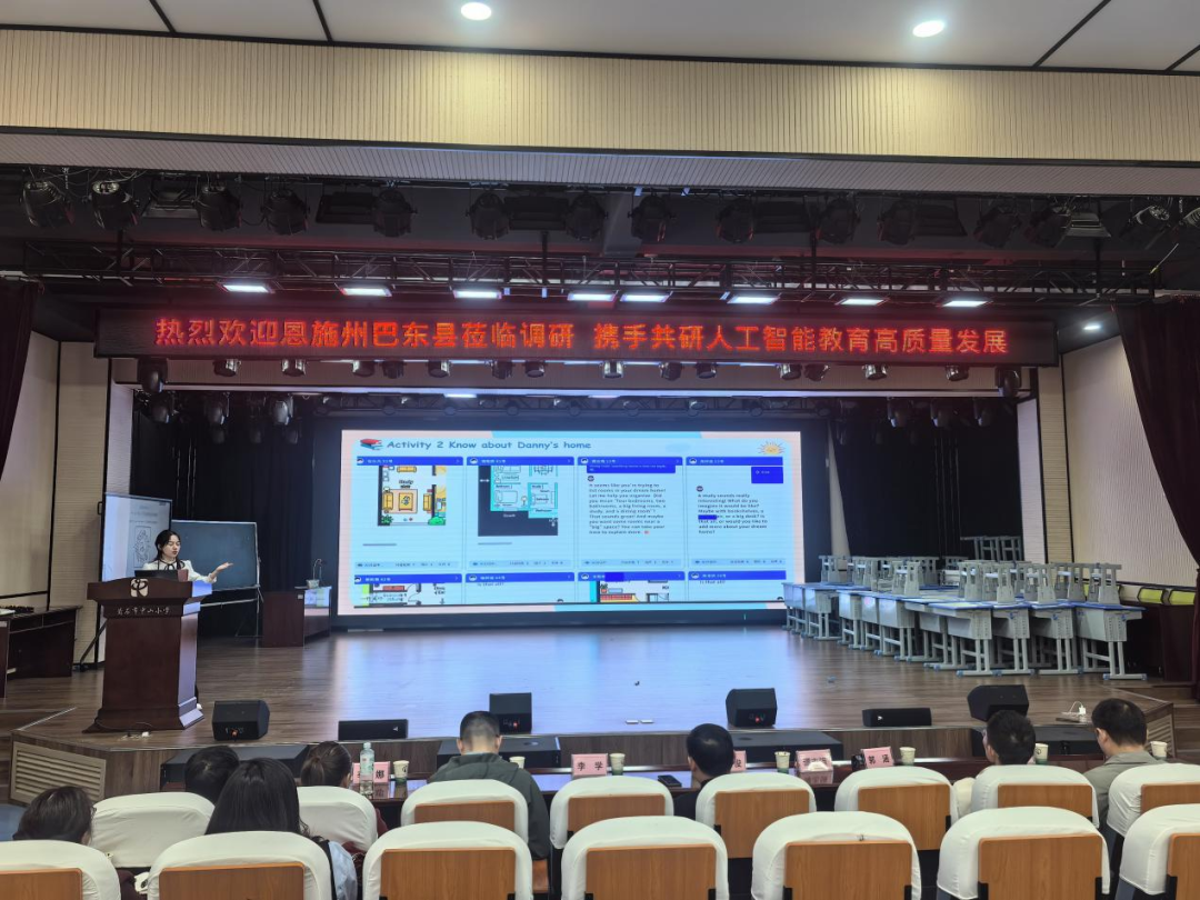 考察组在学校报告厅观摩了AI赋能教学展示。中山小学教师吴紫君运用人工智能平台实时分析练习数据、精准诊断学情、动态调整教学策略,打造高效互动课堂;严美娟老师开展AI赋能英语说课展示,生动呈现人工智能助力个性化学习、优化课堂结构的实践成效。