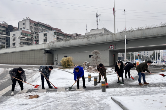 受强冷空气影响,寒潮大风和低温雨雪冰冻天气导致道路积雪结冰,给广大居民的出行带来了诸多不便。为做好道路结冰应急工作,消除道路交通安全隐患,保障辖区居民的出行安全,沈家营街道各社区联合市、区包保单位的下沉党员干部、居民志愿者持续开展铲雪除冰行动。