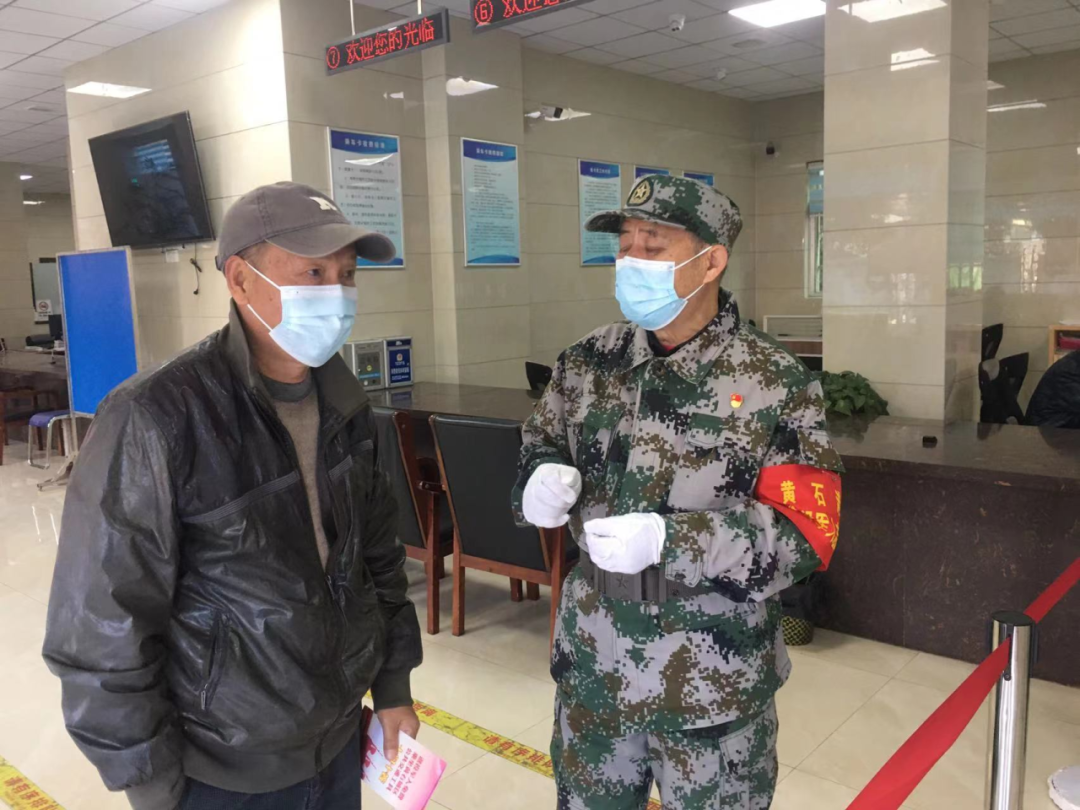 大厅里,何世敏佩戴退役军人志愿者红袖章,引导他们有序排除,给他们讲解相关政策,协助行动不便的人员办理免费乘车卡……用实际行动诠释退役军人的责任与担当,冲锋在前,守护社会平安稳定,展现了退役不褪色的良好精神风貌,也赢得了大家的高度赞扬。